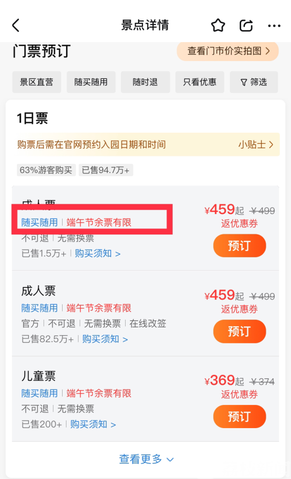 “难订指数”还显示,上海难订指数为4以上的景区数量最多,达6家。魔都或将成为全国端午景区门票预约最为紧张的地区,其次是成都、西安、广州、重庆。消费者也可以打开相关App进入“景区限流抢先预约”专题了解全国近300个城市更多热门景区预约要求和余票情况。