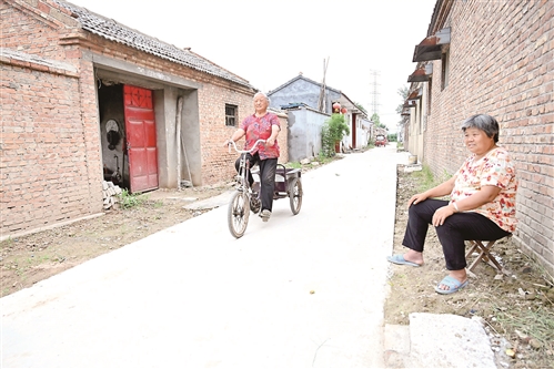 在村党群服务中心后边新修建的公交站台,开超市的村民陈宝忠正准备坐公交车去县城进货。他说:“以前村里是简易公交站台,只有一个线路牌,现在通过驻村帮扶,新修了标准站台,既遮风挡雨,又宽大漂亮,农路连着民心,路通了,‘穷帽子’自然就掉了。”