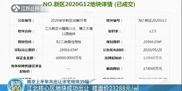 6月23日,南京江北核心区出让了一幅纯住宅地块。由于地理位置十分优越,吸引了多家开发商报名竞拍。随着这一拍结束,2020年上半年,南京不含工业用地,共成功出让了39幅地块。