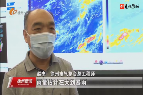 徐州市气象台总工程师 赵杰:并有一次强降水过程,雨量估计在大到暴雨,部分地区有可能达到大暴雨,并可能伴有短时强降水、强雷电,以及8到10级的雷雨大风。