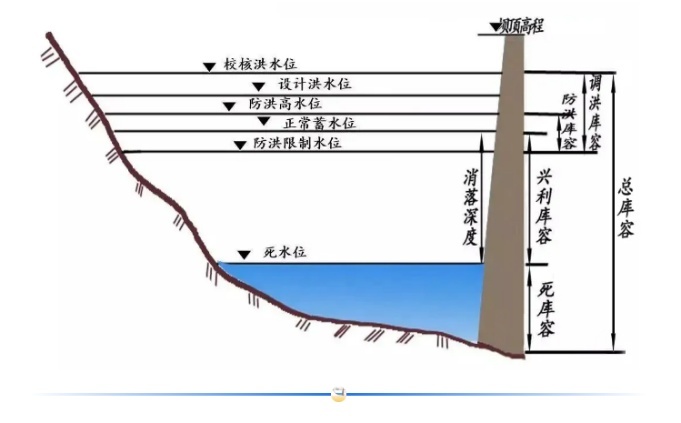 防洪限制水位是水库在汛期允许兴利蓄水的上限水位,也是水库在汛期防洪运用时的起调水位,其上还有正常蓄水位、防洪高水位、设计洪水位、校核洪水位。