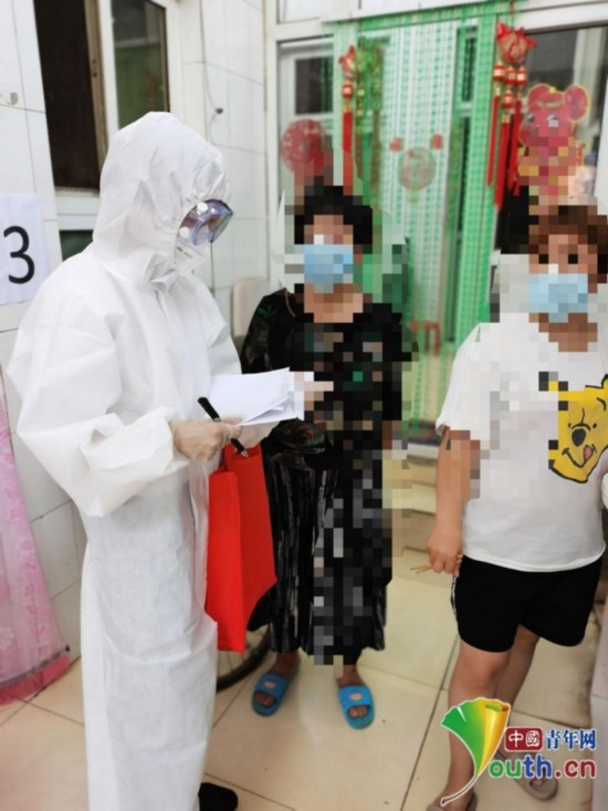 在金鹏天润社区,徐洋有时一天要跑两次没有排查过的“空白点”,“白天上门居民不在家,漏掉的住户晚上再去。”她还记得第一次穿上防护服的感觉,“心情就像过山车一样,确实体会到了医护人员的不容易。”