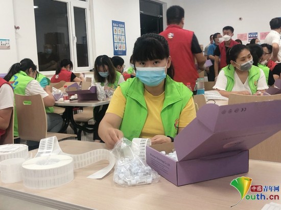 大兴社区青年汇社工连夜支援核酸检测试剂盒筹备工作。