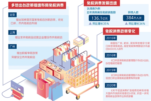 今年以来,多地政府出台政策措施提速布局免税消费。北京加快落实国家免税店创新政策,优化口岸、市内免税店布局;上海支持免税品经营企业增设市内免税店;广州积极争取政策突破设立市内免税店。免税消费正在走向前台。