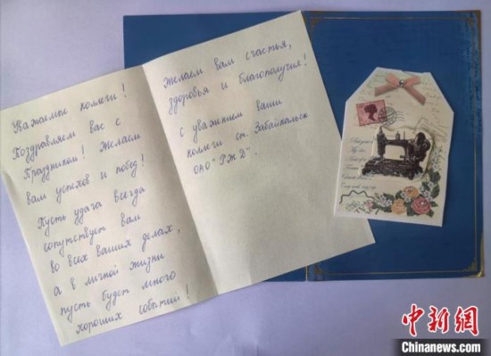图为许立民收到的俄文贺卡。 哈铁提供