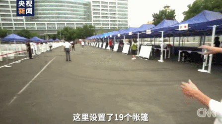 记者介绍,该监测点设置了19个帐篷,承担附近19个社区居民的核酸检测任务。