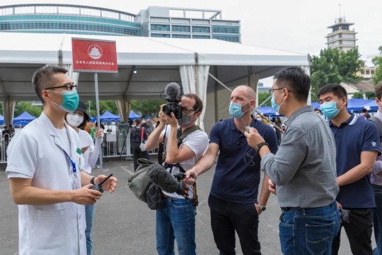 自6月11日新发地疫情发生后,北京迅速加大核酸检测力度。6月24日,多个户外核酸采样工作舱正式启用。来自路透社、法新社、美国有线电视新闻网、俄罗斯全国广播电视公司、东京广播公司等15家境外主流媒体走进检测点,对北京检测情况做了报道。