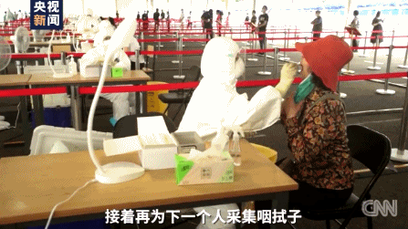 记者看到前来检测的居民井然有序地排队登记,并在一处临时大厅内接受身着防护服的医护人员采集咽拭子。
