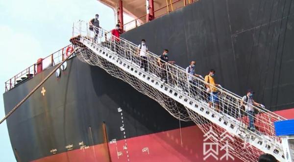 船长苏鑫全说,因为这次受疫情的影响,船员在国外换班的可能性很小很小,我们全体船员对这次换班非常满意。