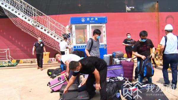 合盛轮船长苏鑫全上岸后非常激动,他说:回家一趟很不容易,我们感谢伟大的祖国,感谢当地的政府,给予我们船员换班带来的大力支持和帮助,让我们能够顺利回到祖国,顺利换班。