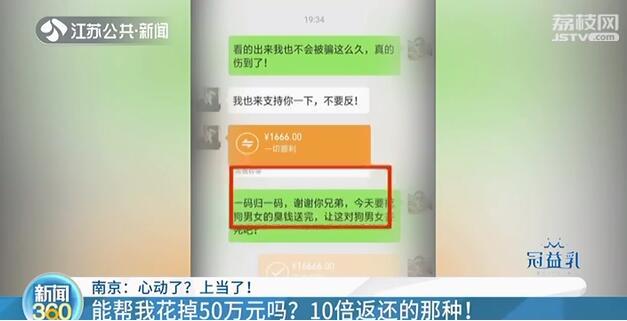 近日,南京市民周女士在视频网站上认识了男子张某,对方加了她的微信。没过多久,张某在朋友圈发帖称,要找人帮自己花掉50万元。竟然有这么好的事?周女士心动了。