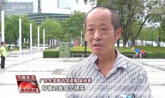广东东莞图书馆读者 吴桂春:好像对我是个损失,因为看这书对我很有帮助,所以我在离开东莞,不能(在这里)看书了 。舍不得的就是图书馆,里面给了我好多的知识,或者给了我人生最好的心态。