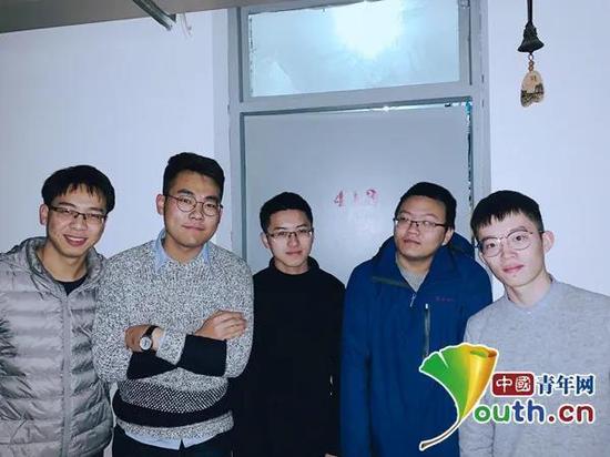 图为该寝室成员,从左至右依次为陈雨晖、刁宜欣、康泽、冯涛、丁心童。受访者供图