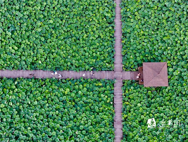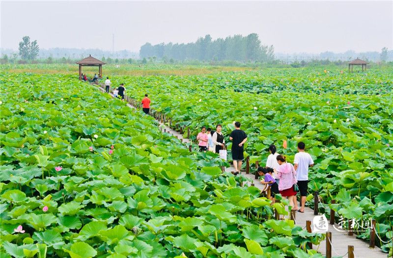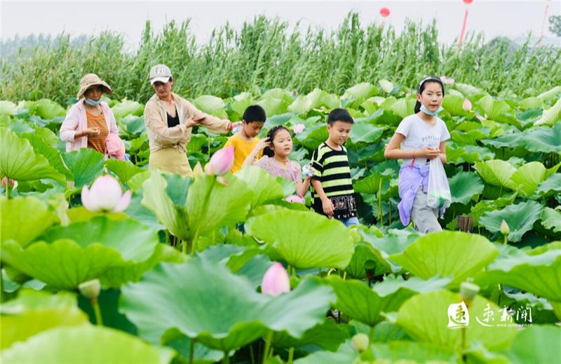 6月26日,宿豫区杉荷园景区荷开正艳,吸引众多游客游玩拍照。