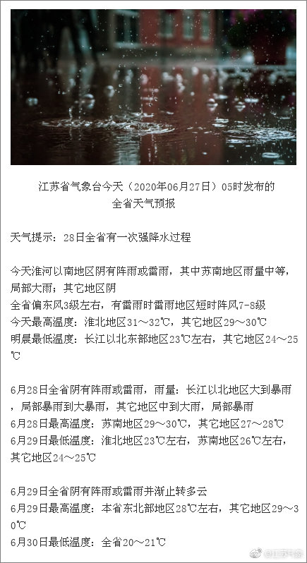 28日阴有阵雨或雷雨,雨量可达大到暴雨,