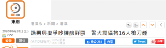 报道称,警方经初步调查后,拘捕疑似涉案的16名男子,把他们带回警署扣查。警方正调查事件起因。