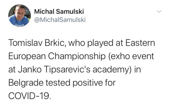 “我在贝尔格莱德待了两周,不清楚是在哪里感染的。这个比赛组织得很棒,我会再参加。”目前,贝尔基奇正在进行隔离治疗。