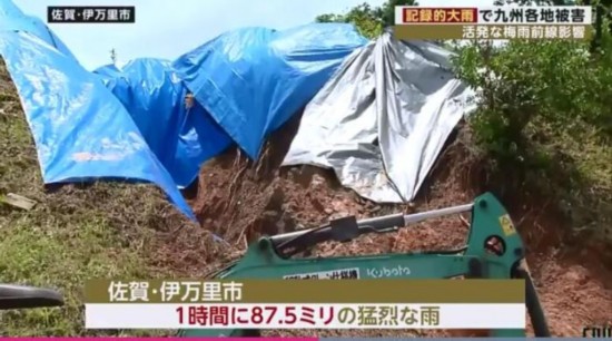 佐贺县伊万里市每小时降雨量也达到了87.5毫米,当地还因暴雨发生了塌方,不过暂无人员伤亡报告。