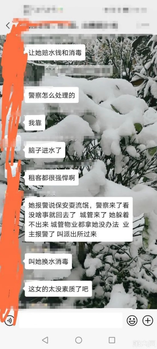 一位不愿透露姓名的业主说,自己作为“目击者”,跟着物业和城管一起上门找女子“理论”,但女子始终不肯开门,躲在家里不出来,双方僵持了20多分钟。“后来我就先走了,城管好像也没办法,物业说他们会把事情处理好的。”