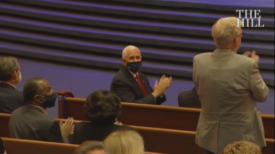《国会山报》还表示,虽然视频显示彭斯在观看表演期间戴了口罩,但据报道,他在活动期间发表讲话时却摘下了口罩。