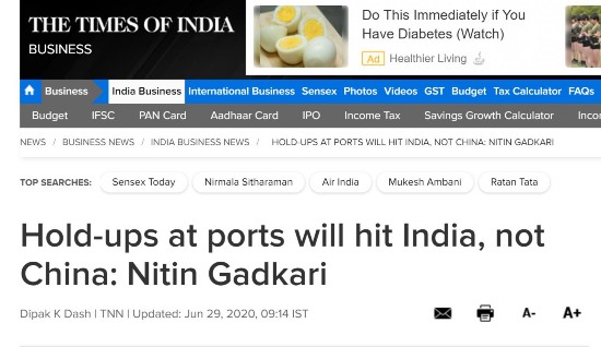 据《印度时报》消息,加德卡里还做出了这样的表述:阻碍这些进口商品通关只会伤害印度企业家,而不是中国。“我们的重点是减少进口,为此我们可以提高进口关税。但是给这些已经进口的商品设卡会损害我们的企业家,导致他们蒙受巨大损失。”