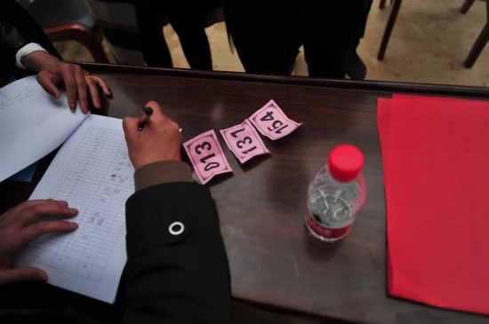 图为工作人员为抽中认购签的民众登记。 张伟 摄