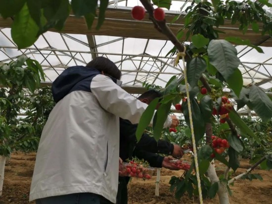 据张世杰介绍,车厘子智能温室大棚已有11栋,土壤专门进行过改良,树苗也是从内地引进的美早、红灯、拉菲斯等知名品种,在专业技术人员的指导下,项目务工人员每日为果树进行新梢摘新、控温浇水,精心呵护着每一株果树。