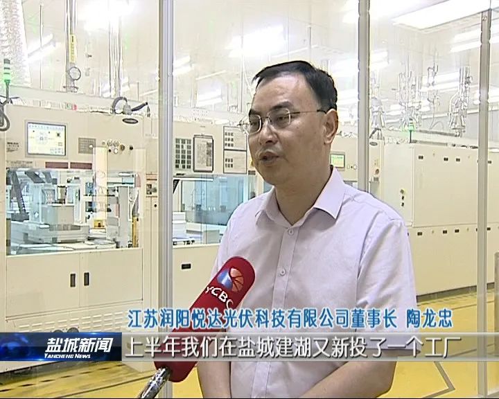 江苏润阳悦达光伏科技有限公司董事长 陶龙忠:“上半年我们在盐城建湖又新投了一个工厂,这个工厂的产能规模是5GW。大概在8月份设备开始调试,9月份开始进行生产。到今年年底,我们建湖工厂加上盐城工厂规模会超过10GW,预计今年的销售会超过50亿元。”