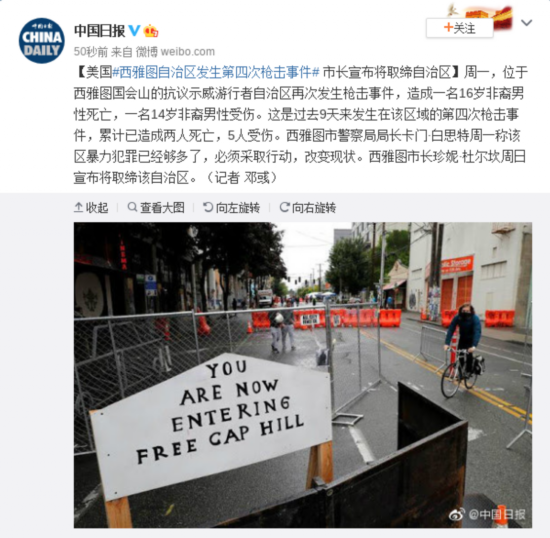 原标题:美国西雅图自治区发生第四次枪击事件 市长宣布将取缔自治区