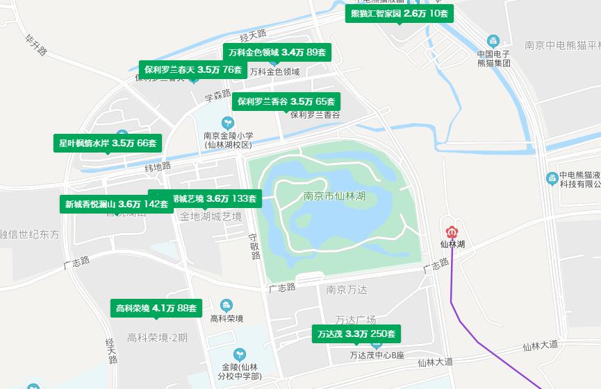 二手房方面,仙林湖板块聚集了保利罗兰春天、新城香悦澜山、金地湖城艺境、星叶枫情水岸等小区,二手房的成交单价维持在3.5万/㎡左右,最高成交价甚至超5万/㎡,价格严重倒挂,这也成为官方宣传的一大亮点。