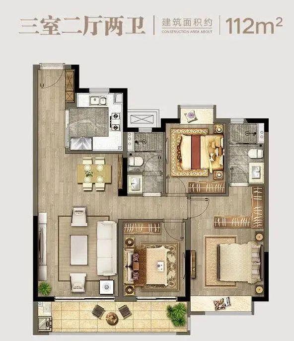 (招商雍荣府三种户型均为三开间朝南,户型结构方正,各个房间都有独立飘窗保证了房间内空气的流通,采光良好;其中112、137㎡户型南面设置阳台,卫生间采用干湿分离设计。总体来看,户型设计合理,空间较为宽敞。)