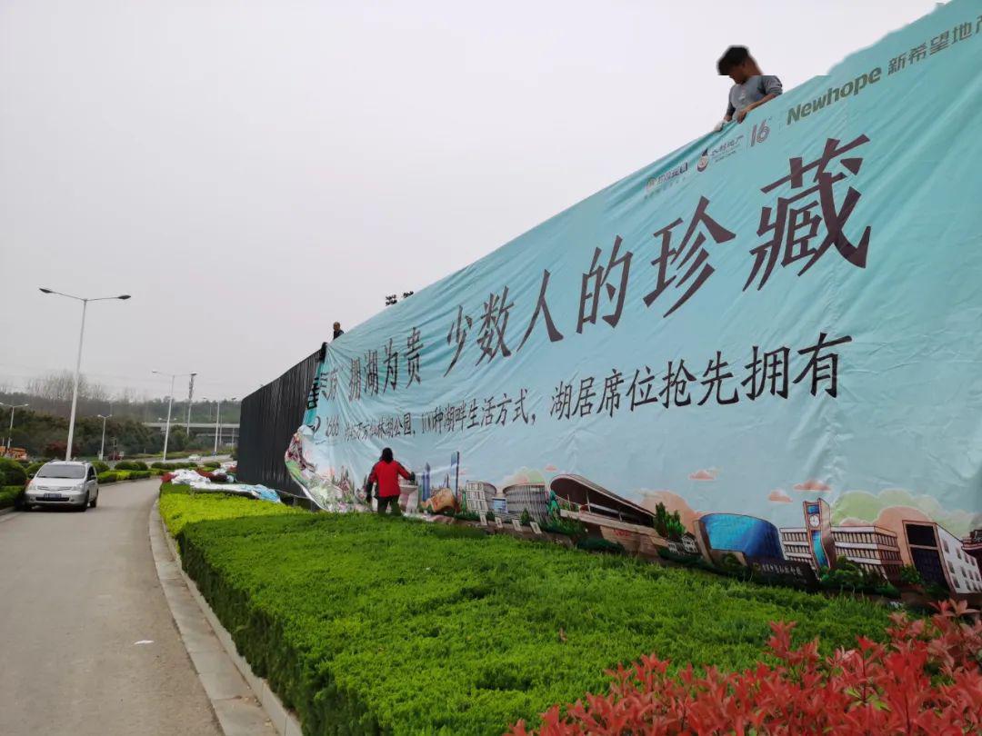 不少工人在围挡上铺设广告,项目更是喊出了“南京湖居范本”的口号。据现场一位工作人员介绍,项目住宅地基已基本打好,售楼处目前正在进行绿化工作,不久便可对外参观。