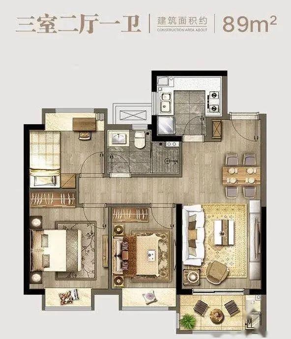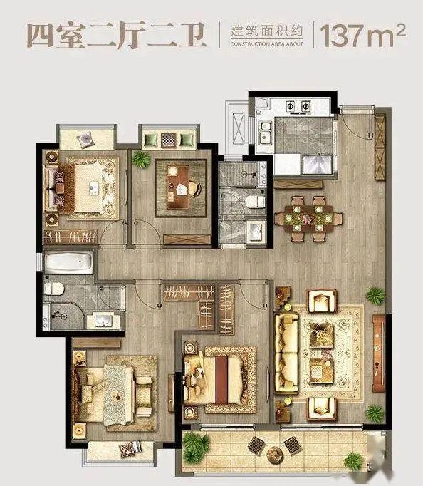 3.水沐雍荣府户型面积为89㎡、112㎡和137㎡,基本能够覆盖从刚需到改善三种置业需求,其中,89㎡得房率85%左右,112㎡、137㎡得房率则在90%左右。