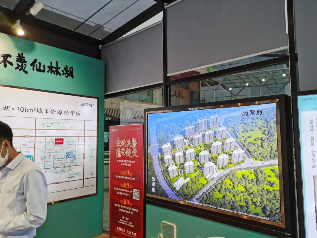 为更详细地了解项目信息,小编又前往水沐雍荣府仙林金鹰城市展厅一探究竟,展厅内部有4、5名工作人员守场,并对来访人员进行意向登记及解答,并设置了项目的区位图、楼座图以及户型图单页。