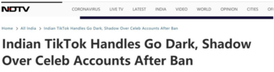 美国消费者新闻与商业频道(CNBC)援引的一项数据显示,截至今年4月,TikTok的下载量超过了20亿次,而大约30%来自印度。就该禁令,印度新德里电视台29日也表示,该禁令将给TikTok平台上的一些名人账号和政府机构号蒙上阴影。