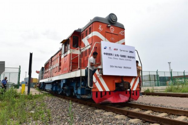 6月5日,开往西班牙马德里的 “义新欧”中欧班列防疫专列由浙江义乌西站出发。(新华社发 吕斌摄)