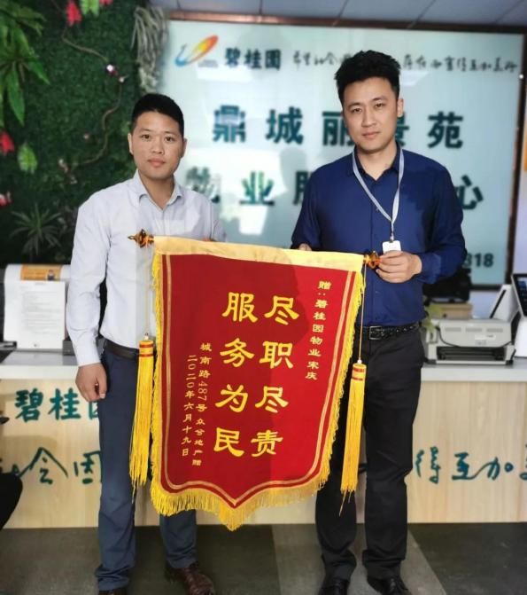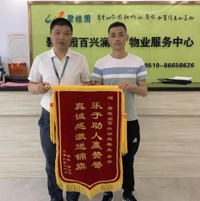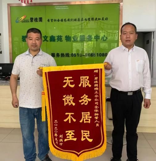 碧桂园服务江苏区域文鑫苑项目:文鑫苑18栋业主在装修期间,一些装修材料因人力有限,到物业服务中心寻求帮助,于是物管领班徐涵金安排队员去帮忙;装修结束后,碰到业主在搬家准备入住,便主动上前帮忙抬运家具等其他物品,业主很是感动,对碧桂园物业服务伸手点赞,并特意送来锦旗表示对全体物管人员的感谢。