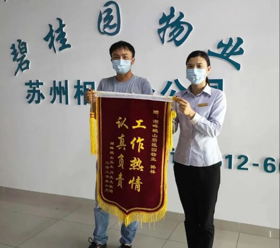 碧桂园服务江苏区域百兴澜庭项目:百兴澜庭231-1203业主,从收房以来维修问题一直没有得到根本性解决,之后联系物业现场负责人李军,李军得知后立刻与客户关系部和维修单位进行联系,督促相关部门进行整改让业主尽快入住,在把问题解决之后第一时间与业主联系让其过来检查复验,让业主尽快装修入住,业主表示很满意故送来锦旗一面,表示对物业服务的认可。