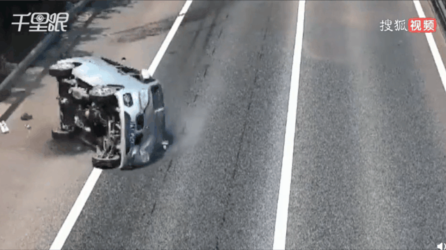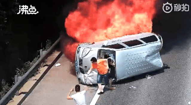 6月26日,重庆永川一辆面包车在高速上失控突然撞向护栏侧翻随即爆燃起火车内3人被困情况十分危急