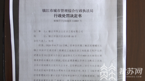 目前,此事的进展情况如何?6月30日上午,记者再次来到镇江市城管局,渣土管理处处长王建祥表示,城管局已于当天向非法处置泥浆的镇江市华业土石方工程有限公司下发了行政处罚决定书。