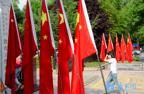 这是6月30日,记者在宿迁市区多地拍摄的营造“七一”氛围的图片。