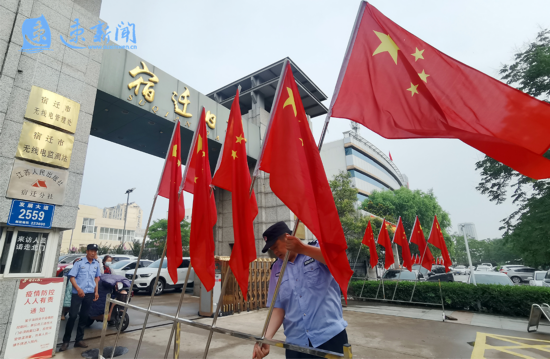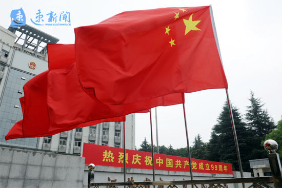 连日来,宿迁各级党政机关、事业单位、国有企业等纷纷采取在门前摆放国旗、悬挂庆祝标语、楼体LED大屏播放等方式,热烈庆祝中国共产党成立99周年。走在城区各条道路上,一面面鲜艳的五星红旗迎风飘扬,庄严肃穆,一幅幅“热烈庆祝中国共产党成立99周年”醒目的横幅映入眼帘,一抹抹“中国红”把城市装扮得美丽又喜庆,成为街头一道亮丽的风景。