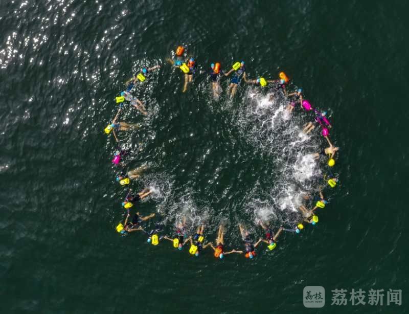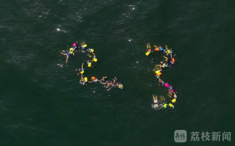记者注意到,在海面上,青年们按教练指示一同游出海面,在水中做出一些指定动作、拼砌各种图形,还摆出了“23”的字型,希望以活力健康的形象共庆回归。