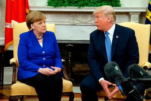 2018年4月27日,在美国华盛顿白宫,美国总统特朗普(右)与德国总理默克尔举行会晤。新华社/美联