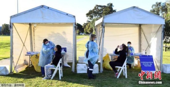 当地时间2020年7月1日,澳大利亚墨尔本,市民接受新冠病毒检测。