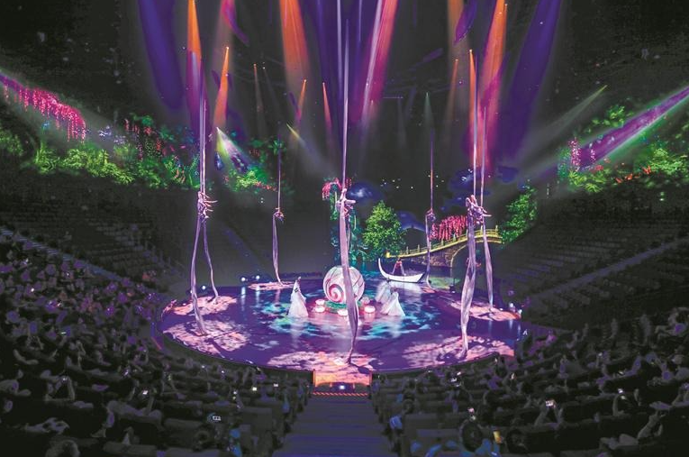 昨晚,停演了5个月的《太湖秀》焕新归来。新版《太湖秀》时长缩短了,情节更加紧凑,无锡地方特色与中国舞、武术、太极等表现形式结合,让整场表演更能调动观众的兴致(如图)。这场传奇大剧“点燃”了夏夜,也让无锡文旅“夜经济”在疫情防控常态化之下燃起来。