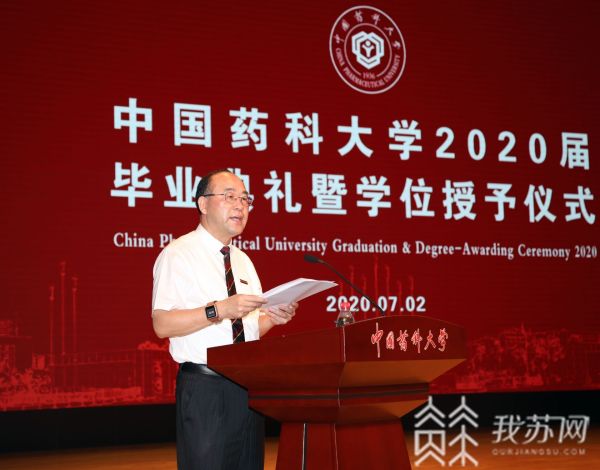 中国药科大学校长来茂德说: “因为疫情,同学们只能默默回味食堂的香锅;因为疫情,只能在朋友圈里盗图神兽黑天鹅;因为疫情,只能在梦里遇见镜湖的栈桥;因为疫情,我们不能进行9个小时学位授予仪式……我们有太多的不舍和遗憾。如果我们同学明年愿意回来参加学位授予仪式,我们非常欢迎并首先为大家安排时间,留出座位!此刻,在你们毕业之际,我代表中国药科大学,向风华正茂、意气风发的同学们表示热烈的祝贺!”