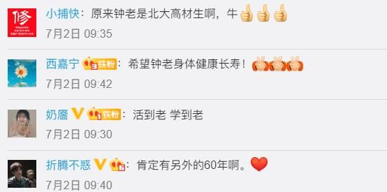 国士无双,鞠躬尽瘁。钟南山院士还要用“未知的若干年”为祖国服务,让很多人动容。网友暖心留言,隔空祝愿钟老健康长寿。