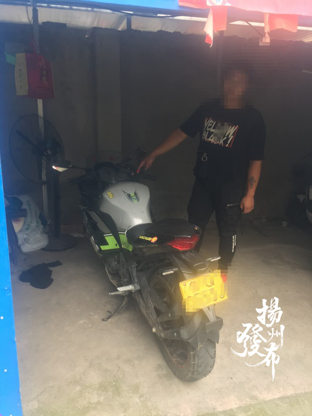 7月2日上午8时21分,高邮警方接到群众报警称,自己停在小区楼下的一辆摩托车不见了,怀疑被人给偷走了。