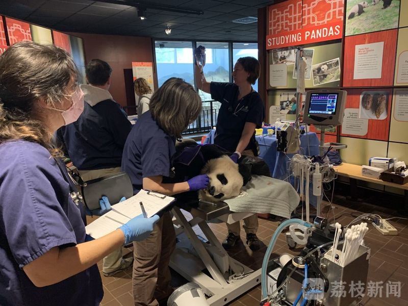 疫情期间,这样的手术要格外小心,为了确保大熊猫的安全。史密森尼动物园方做出特别规定,严格限制工作人员进出熊猫馆,对设备和房间严密消毒。
